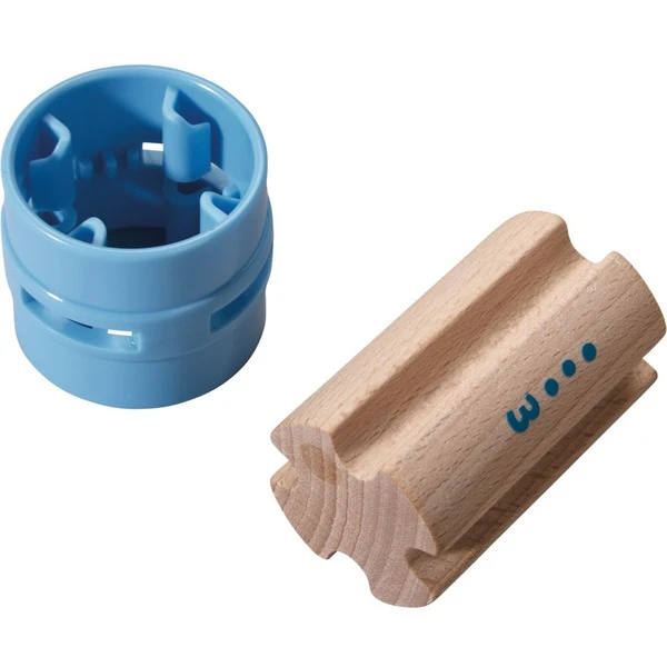 Alle Kullerbü-Bahnen von HABA lassen sich mit tollen Ergänzungssets kombinieren – so auch mit dem Ergänzungsset Säulen. Es bringt noch mehr Höhe ins Spiel und verleiht den großen Kugeln so zusätzlichen Schwung. Der Aufbau ist kinderleicht: Mit den blauen Verbindungsmanschetten lassen sich zwei Säulen zu einer hohen Säule miteinander verbinden. Auf den Säulen befinden sich Ziffern und Mengenpunkte als Höhenangabe: Je höher die Ziffer bzw. je mehr Punkte sich auf einer Säule befinden, desto höher ist diese. Steckt man nun eine dunkelgrüne Basis, eine Säule und einen hellgrünen Verbinder zusammen, entsteht ein stabiler Träger für Rampen, Geraden und Kurven. So lässt sich die Kullerbü-Spielwelt nach Herzenslust erweitern!