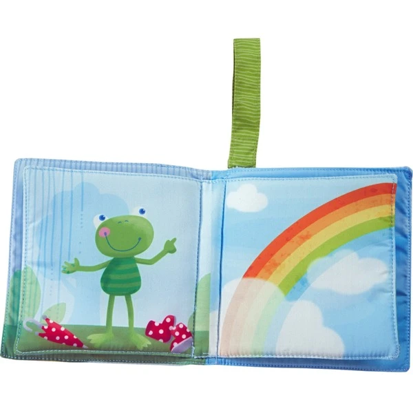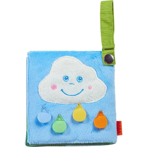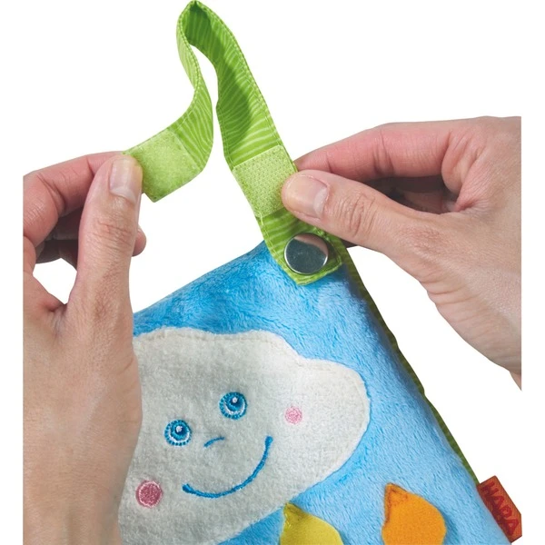 In diesem Buch für Kinder ab sechs Monaten strahlen Sonne und Regenbogen um die Wette! Und es gibt auf jeder Seite etwas zu entdecken: Eine Wolke mit Knisterfolie und eine quietschende Sonne – sorgen für Anregung für kleine Kinderhände. Mit seiner Klettschlaufe kann das Buch ganz leicht am Kinderwagen oder der Babyschale befestigt werden. Art.-Nr.: 1731580